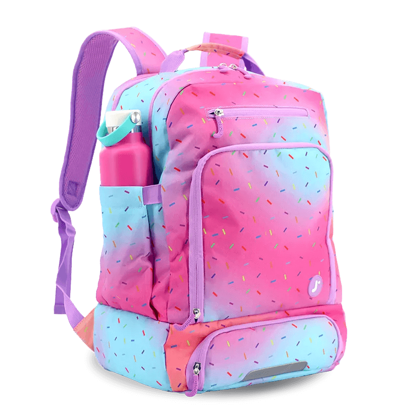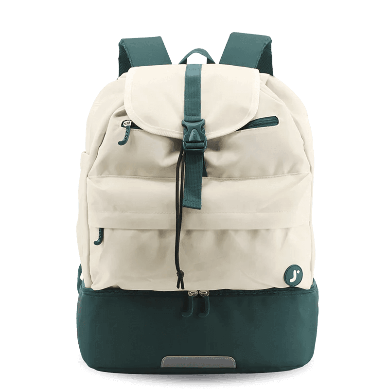 The Packmate backpack combines functionality and convenience, featuring a built-in insulated lunch bag to keep food fresh. It includes three large compartments for a laptop, tablet, books, and essentials, plus two interior expandable bottle sleeves for secure beverage storage.