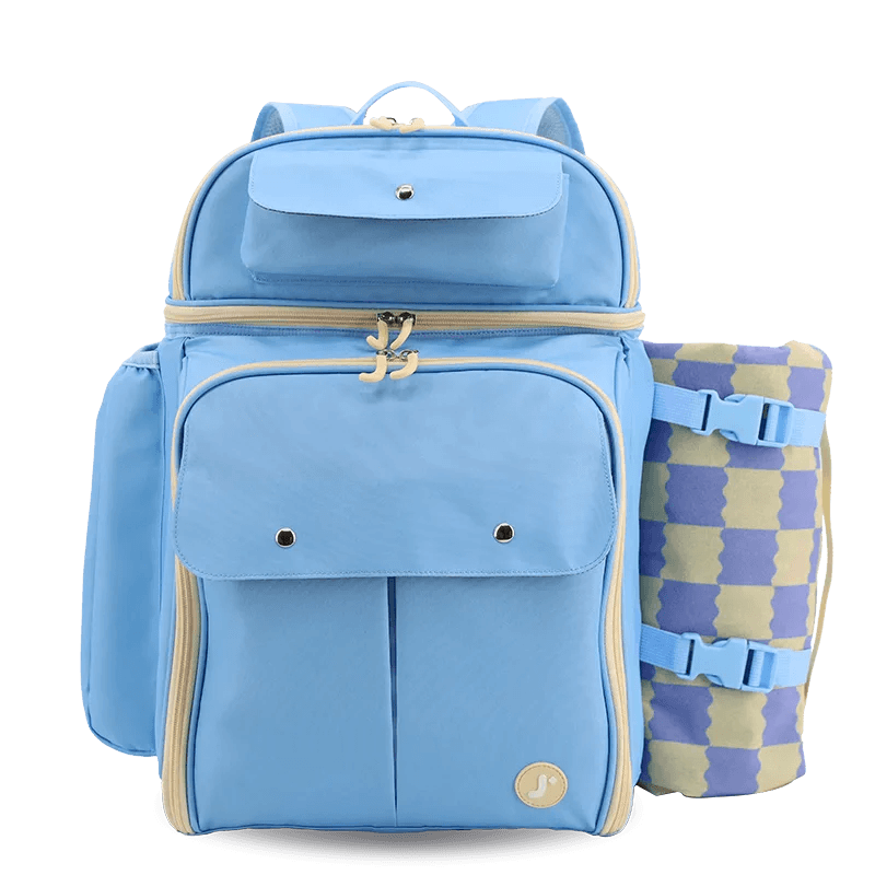 The Picnic Backpack set for 4 is a stylish, functional companion for outdoor meals. Its insulated main and top compartments keep food and drinks cool, while a color-matching picnic mat and side holder add convenience. Features include a padded back pocket for valuables and 13" tablets, a front utensil holder, and an insulated bottle pocket—everything you need for the perfect picnic.